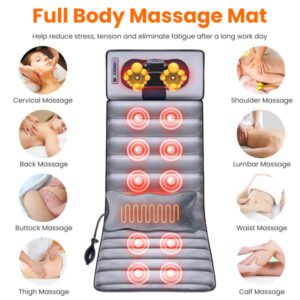 - Full Body Massage Mat: Featured with 10Pcs massage heads that cover back, buttock, waist, thigh, calf, this intelligent massage mat allows you to fully immerse yourself in 9 modes, 9 vibration intensities, 9 speeds and 3 heating multiple massage, effectively help reduce stress, tension and eliminate fatigue after a long work day. Additionally, targeted massage modes also offer a personalized massage experience, ensuring every part of your body receives the attention it deserves.