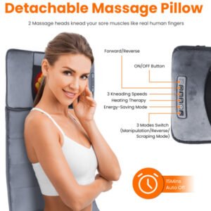 - Detachable Massage Pillow: Come with a detachable massage pillow, 2 massaging head can grasp, knead, press your sore muscles like human fingers, helping relieve your neck pain and stiff neck muscle. You can choose positive or negative direction of massaging or choose other 3 massaging modes as you like. 3 Speeds meet your diverse demands. Built-in heating light brings warmth to your muscle and results in speeding up blood circulation on your neck.